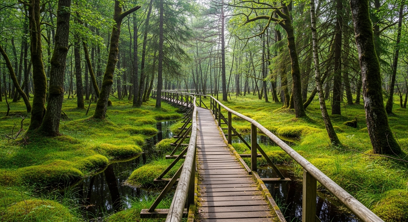 Forest boardwalks over peat and moss gardens offer one of the most peaceful and quietly…